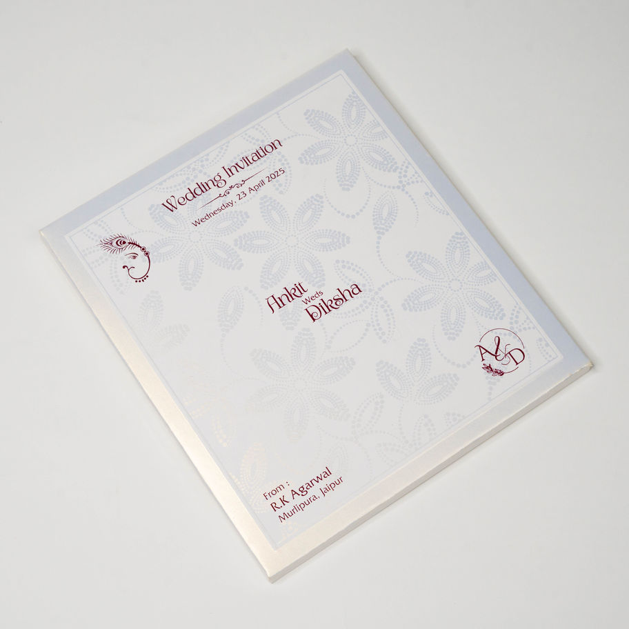 A premium hardbound wedding invitation card is a luxurious, book-style invite crafted with high-quality materials to add elegance to the wedding announcement. Known for their durability and sophistication, these invitations often feature intricate designs, embossing, or foil stamping and are bound like a hardcover book, making them ideal for setting a grand tone for the event. Personalizable with features like velvet linings, monograms, and custom illustrations, they provide a memorable, keepsake-worthy experience for guests.